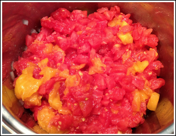 1 quart of farm fresh, local, paste tomatoes + 3 large tomatoes ( I used heirlooms - the taste is amazing and the color fabulous).