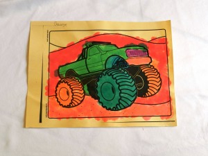 I plan (haha, no implementation yet) on mounting a few of the smaller “can’t part with” pictures on 12×12 pages for the scrapbook. I think it will be fun to watch the kids coloring / painting skills grow as they do in the pictures