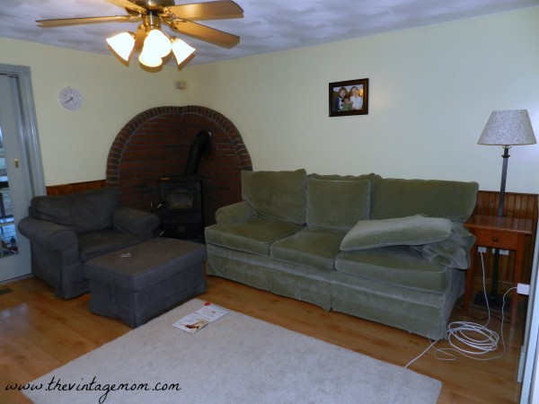 Number one on the list was the family room. You can see, it is a rather small room. Add in a coal stove in the corner of the room - the only corner, and you have an even smaller room. Add in the fact that the ceilings are 7 ft ceilings AND have a swirl like plaster on them and it is practically a small box. Not the most ideal for three active kiddos. So it was a priority to give it an update. It is the room that we “live” in, so a top priority.