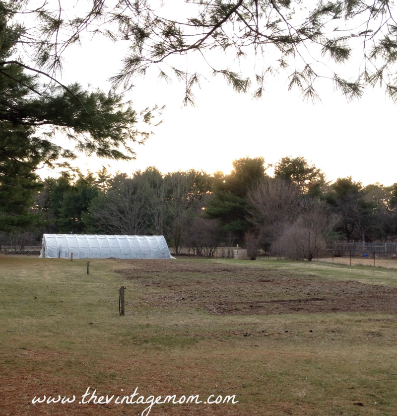 Ben got to building right away too. Our greenhouse cover survived the harsh winter. And so inside, Ben built a big raised bed area where I planted greens - Butterhead lettuce, spinach and lettuce mix. Eventually I think we will be able to plant right in the ground but I am fairly certain the soil will need to be amended a bit before we do. Not to mention, the greenhouse needs to be cleaned up a bit before we do. The good news was that we were able to till the sides and there were not nearly as many rocks as we had anticipated. Microgreens are going to be started in there next!