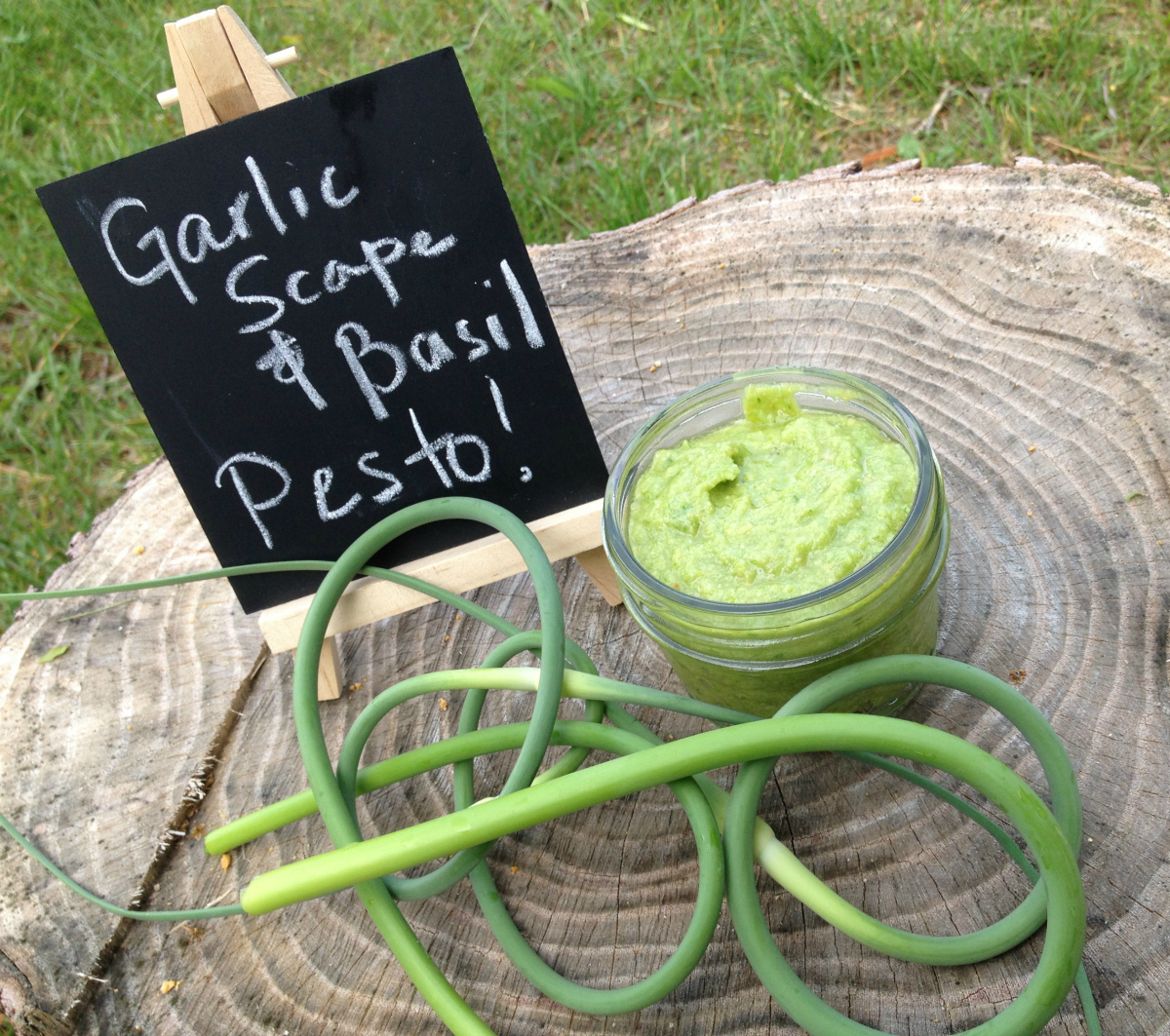 Garlic Scape and Basil Pesto - Nut Free