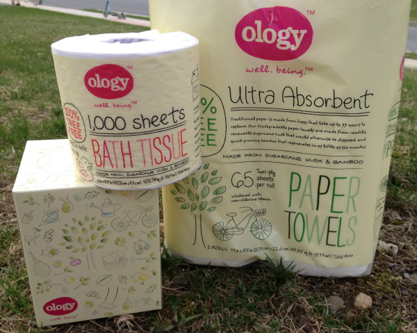 Ology paper products are made from 100% tear-free materials and I can attest to the fact that they hold up like no other. Their paper towels are perfect for wiping little faces and messy spills! They are also environmentally friendly, made from renewable sugar husk and quick growing bamboo <-How about that?!