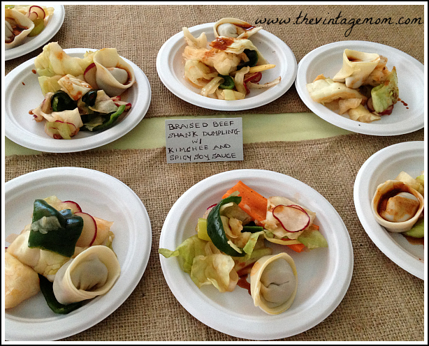 Wyebrook…Ben’s favorite of the night (if he could pick a favorite). It wasn’t said out loud but I could tell because I am pretty sure he found an excuse to head back to Wyebook’s table at least 5 times. “Oh, you need a fork, I know just where to find them.” Sure Ben! Both made from their own grassfed meat, the New York Strip over a bed of mixed greens and my favorite of the two, the Braised Beef Shank Dumpling with Kimchee and Spicy Soy Sauce were perfection.