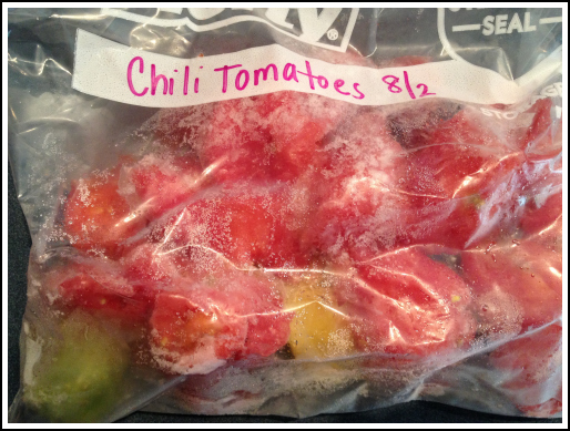 As we went into the weekend, some of the tomatoes started to get a bit soft so I got a head start on storing them. Here we are with a freezing tutorial!