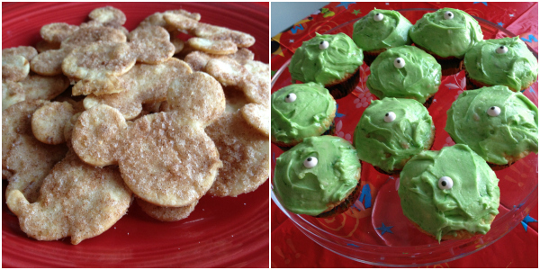 The kids dined on some delicious pizza, Mike Wazowski cupcakes, Mickey Dessert Nachos (check out our recipe and video tutorial!), and of course the official Disney snack was there, Craisins!