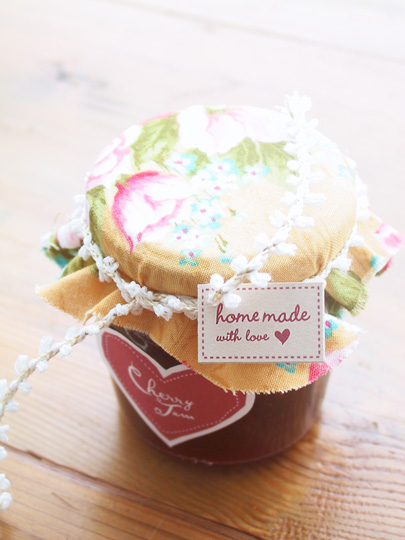 Jam Labels and Tags - I love the colors on these labels and tags from Eat Drink Chic! The fabric is a gorgeous touch and the tags circling the jar make it easy to personalize this gift!