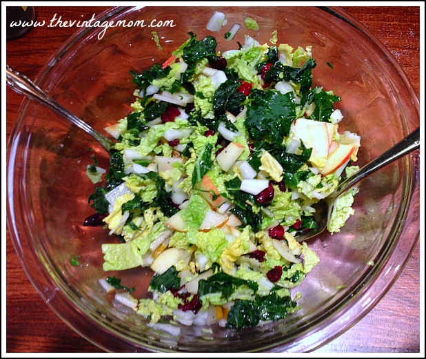 This summer, we were over good friends of ours house for a BBQ. We had your classic, traditional burgers, chips, dip, and hot dogs. And then, we had “the salad”. It was the most delicious salad that I have ever tasted. Made with a base of cabbage and and kale, Ashley put together this mix of deliciousness that I just had to recreate!