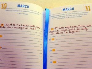 I have been writing in this journal for just about one year now and I can’t wait to start the next year so that I can relive those memories of the previous one. What a weight has been lifted off my shoulders knowing that I have a record of them to keep.